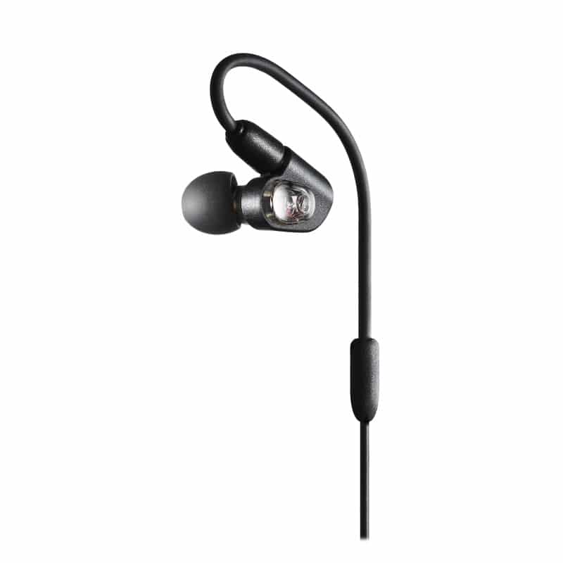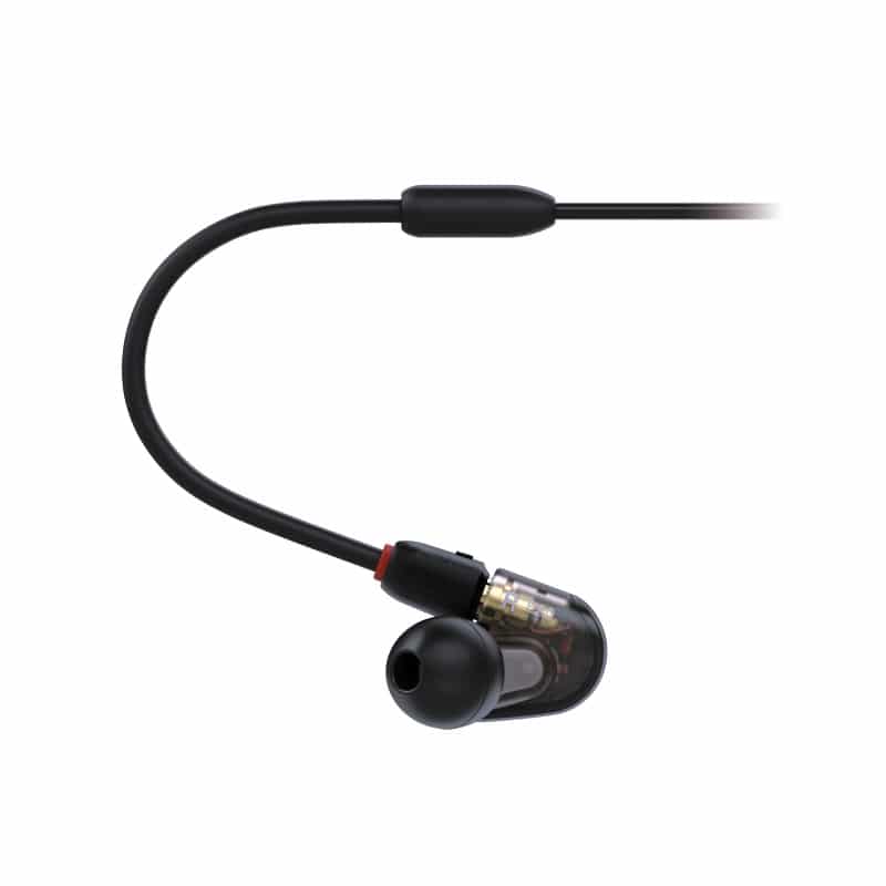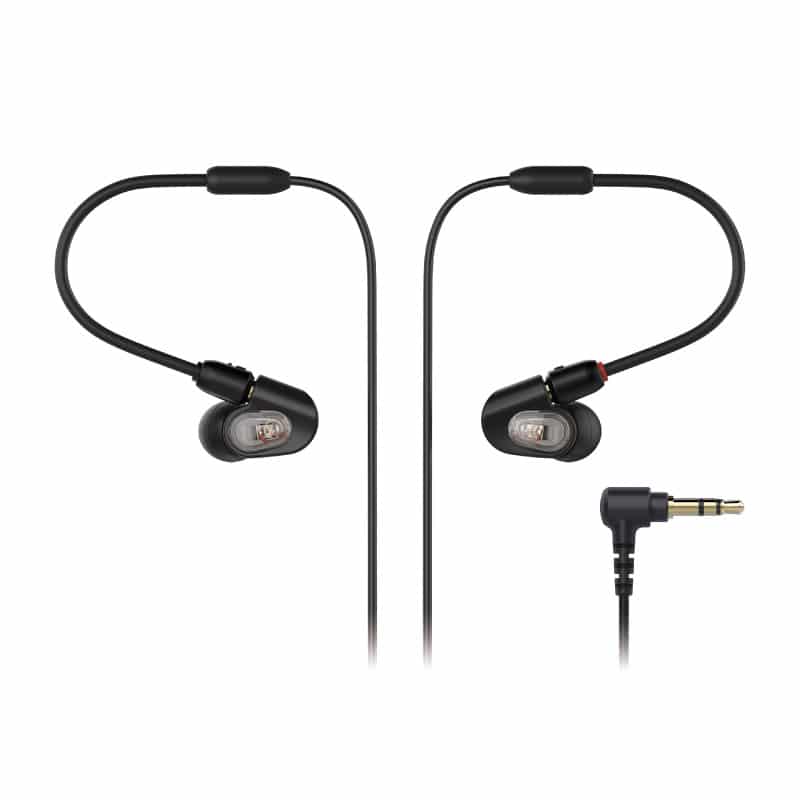 Audio-Technica ATH-E50 หูฟังอินเอียร์ การสวมใส่จะเป็นแบบคล้องหลังหูโดยช่วงต้นสายที่ติดกับตัวหูฟังจะเป็นลวดที่สามารถดัดได้ เวลาสวมใส่ก็ดัดสายให้กระชับกับใบหู ทำให้ตำแหน่งของหูฟังค่อนข้างนิ่งสำหรับขั้วต่อจะเป็นแจ็ค 3.5mm แบบตัว L และสายที่ให้มาถึง 1.6 เมตร